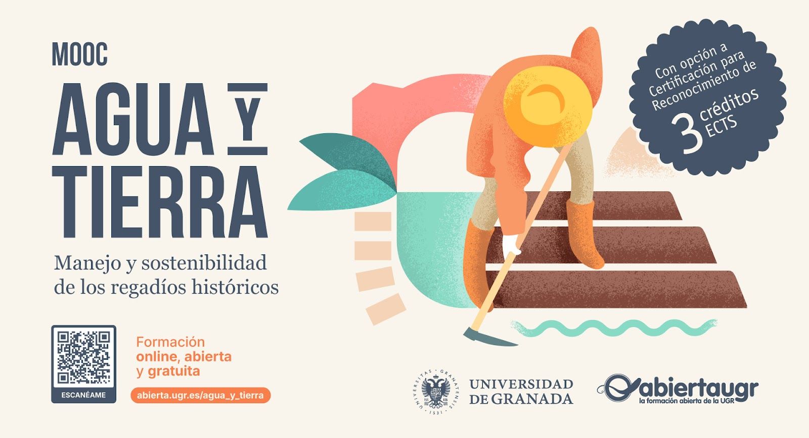 ¿Te interesa el patrimonio, el medio ambiente o la gestión del agua?. Te invitamos a participar en este curso online gratuito de la Universidad de Granada. Os presentamos el nuevo MOOC "Agua y Tierra", una propuesta formativa centrada en los sistemas históricos de regadío, sus valores y su vigencia ante los desafíos actuales del agua y el territorio.
