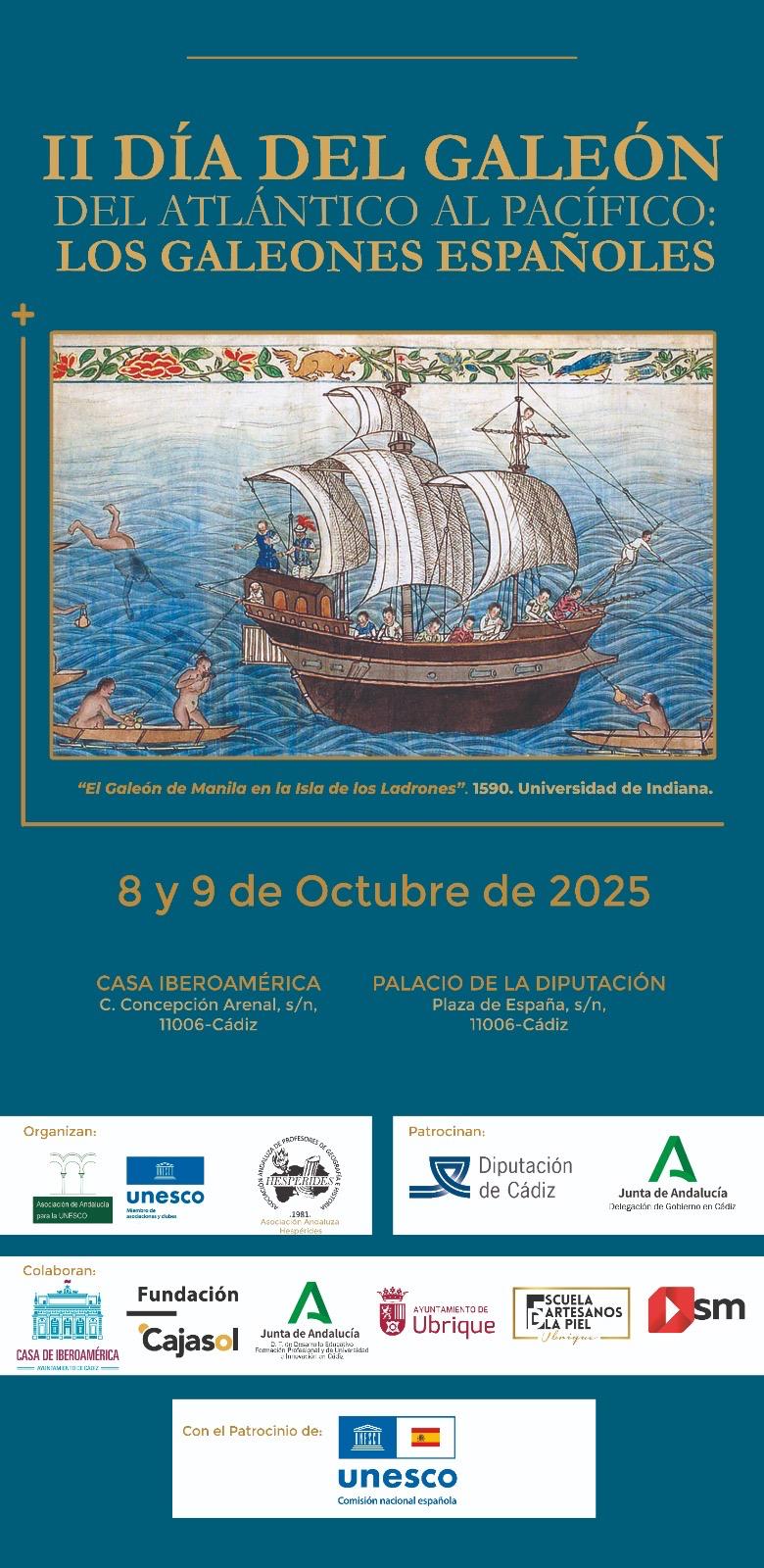 La Organización de las Naciones Unidas para la Educación, la Ciencia y la Cultura (UNESCO), mediante la resolución 35 C/COM CLT/DR.1 adoptada el 5 de octubre de 2009, proclamó el 8 de octubre como Día del Galeón. Dicha resolución reconoció el valor histórico de los galeones que unieron Manila y Acapulco entre los siglos XVI y XIX, al constituir no solo una ruta de comercio transoceánico, sino también un flujo de conocimientos, creencias, lenguas y tecnologías, configurando una red de intercambio global sin precedentes entre Asia, América y Europa. Con tal motivo, durante los días 8 y 9 de octubre celebramos la jornada "II Día del Galeón. Del Atlantico al Pacífico: los galeones españoles".