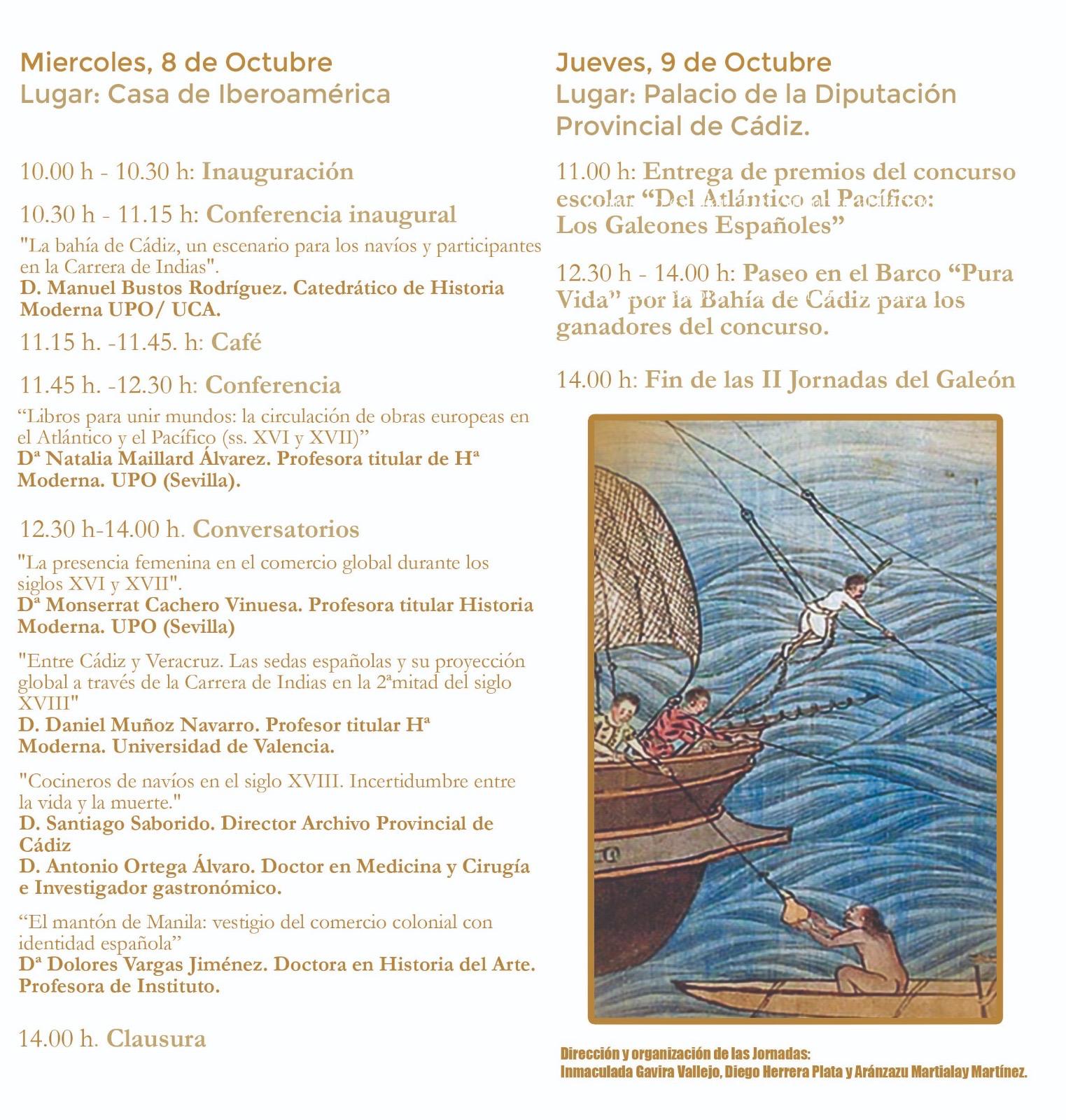 La jornada del día 8 se desarrollará en la Casa Iberoamérica y contará con diferentes intervenciones programa, mientras que el día 9, se hará la entrega de los premios del concurso escolar "Del Atlántico sl Pacífico: los galeones españoles"