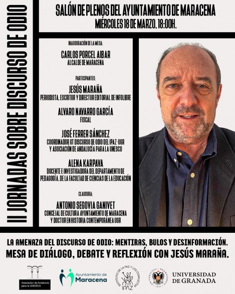 El próximo 18 de marzo, a las 18:00 horas, el Salón de Plenos del Ayuntamiento de Maracena, Granada, acogerá las II Jornadas sobre el Discurso de Odio, bajo el título “La amenaza del discurso de odio: mentiras, bulos y desinformación”.