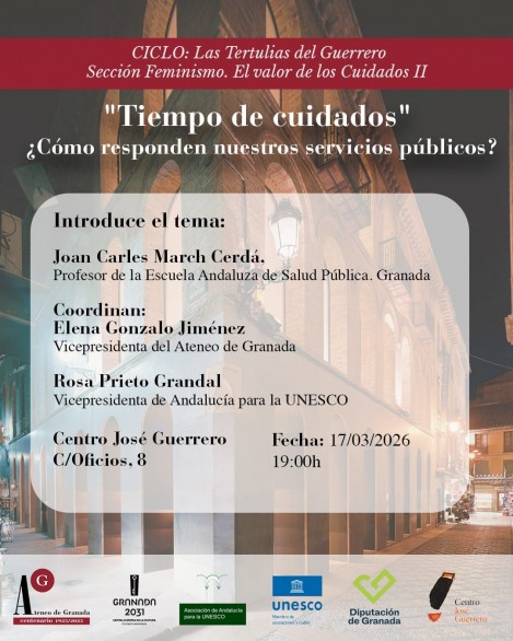 La Asociación Andalucía para la UNESCO y el Ateneo de Granada, con la colaboración del Centro José Guerrero, retomamos las tertulias como espacios de encuentro, pensamiento y diálogo. La tertulia es una de las formas más tradicionales y enriquecedoras de la vida cultural, entendida como conversación reflexiva, plural y respetuosa en torno a temas de interés general. Con esta actividad queremos mantener viva la palabra compartida alrededor de la cultura, en un sentido amplio que abarca el conocimiento, en todas sus disciplinas, en relación con la sociedad y con la vida cotidiana.