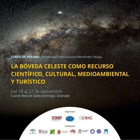 La Universidad Internacional Menéndez Pelayo (UIMP) organiza en colaboración con el Instituto de Astrofísica de Andalucía (IAA-CSIC) el curso de verano "LA BÓVEDA CELESTE COMO RECURSO CIENTÍFICO, CULTURAL, MEDIOAMBIENTAL Y TURÍSTICO"