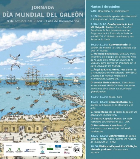 El próximo 8 de octubre, celebramos en Cádiz el Día del Galeón. La UNESCO aprobó la proclamación del 8 de octubre como Día del Galeón (resolución 35 C/COM CLT/DR.1 5 de octubre de 2009). La resolución consideró que los galeones que navegaron entre Manila y Acapulco vincularon a Asia con América y Europa, y fueron no sólo instrumentos de comercio sino también transmisores de culturas. Con Tal motivo, el próximo 8 de octubre celebramos, en Cádiz, el Día del Galeón